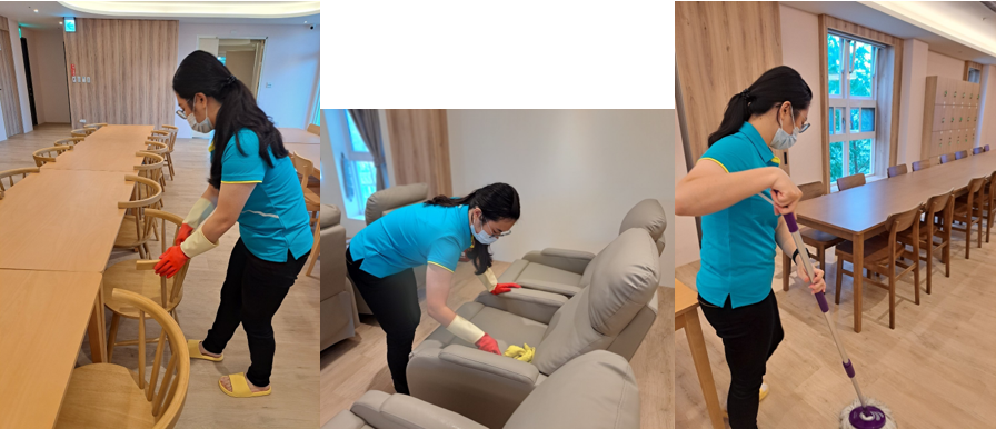 我們每天都會對日照中心的各個區域進行日常清潔與消毒,包括但不限於扶手、門把、公共桌椅、洗手間等高頻使用的地方。此舉旨在保持中心內部的整潔與衛生,確保每位長者的生活環境始終保持安全。