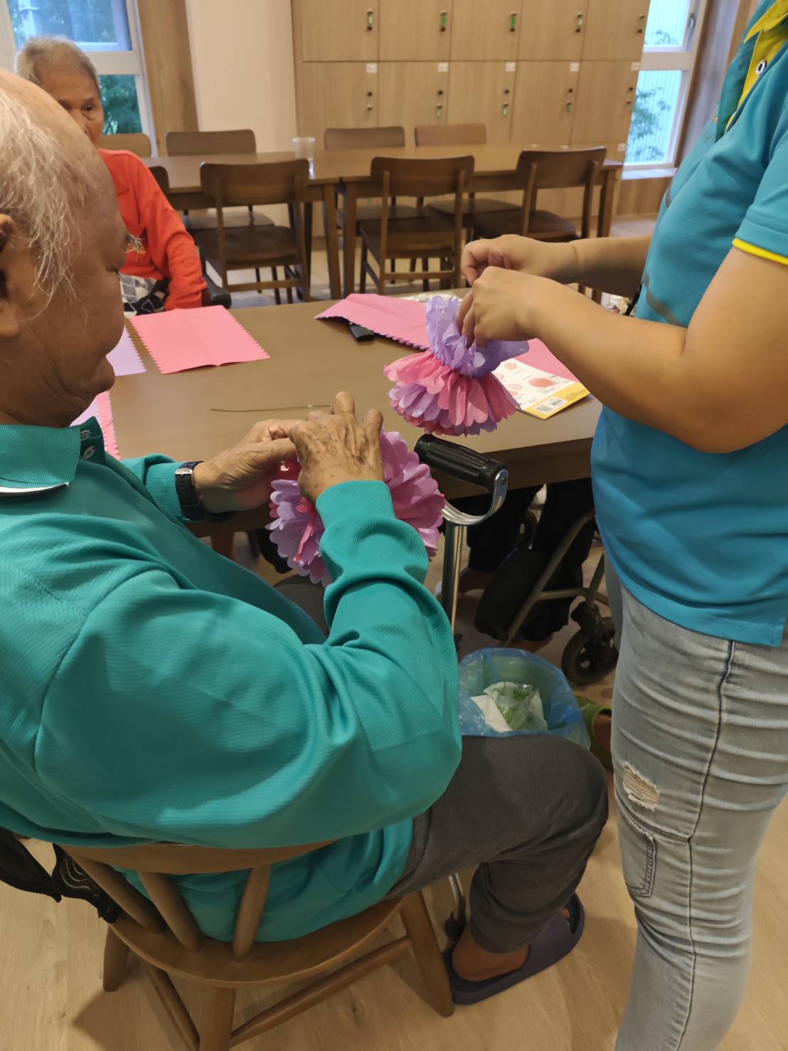 活動中,長輩們將學習摺紙技巧,製作美麗的紙花,激發創造力,還有助於提升手部協調和精細動作。